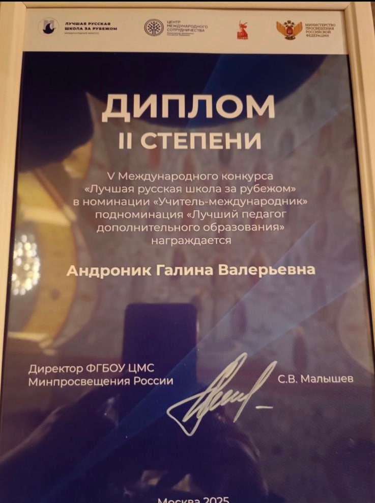 πΆ ΠΠ°Π»ΠΈΠ½Π΅ ΠΠ½Π΄ΡΠΎΠ½ΠΈΠΊ, Π·Π°Π½ΡΠ²ΡΠ΅ΠΉ II ΠΌΠ΅ΡΡΠΎ Π² Π½ΠΎΠΌΠΈΠ½Π°ΡΠΈΠΈ Β«Π£ΡΠΈΡΠ΅Π»Ρ-ΠΌΠ΅ΠΆΠ΄ΡΠ½Π°ΡΠΎΠ΄Π½ΠΈΠΊΒ». ΠΡ ΡΡΠΏΠ΅Ρ